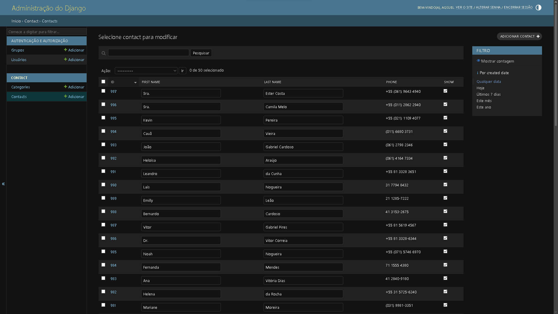 Um sistema completo de gerenciamento de contatos desenvolvido em Python com o framework Django.